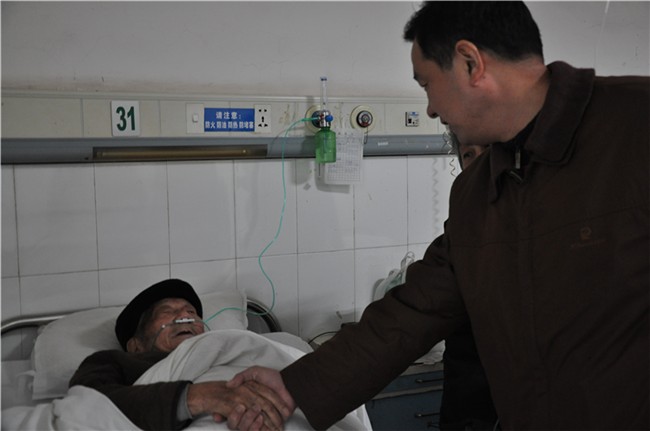在漣源市人民醫(yī)院的病房里,羊小慶親切地握著躺在病床上的老盟員梁兆龍的手,轉(zhuǎn)達(dá)了邵主委的問候與祝福,祝他早日康復(fù),并送上慰問品。梁老十分激動,連連說:“謝謝盟組織的關(guān)心!”