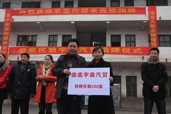 12月31日,婁底市政協(xié)副主席、民盟婁底市委主委邵瑛率婁底市紅十字會(huì)負(fù)責(zé)人、宇森汽貿(mào)負(fù)責(zé)人等一行到婁底民盟“燭光行動(dòng)”定點(diǎn)學(xué)?!獫i源市斗笠山鎮(zhèn)惠民學(xué)校,為孩子們送上嶄新的校服,陪孩子們共迎新年。