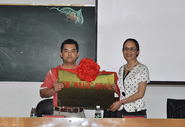 邵瑛為民盟“燭光行動(dòng)”指導(dǎo)學(xué)校授牌