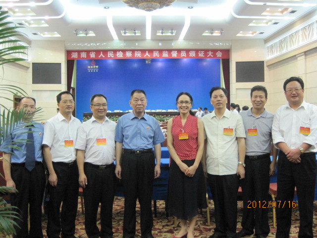 出席省人民檢察院人民監(jiān)督員頒證大會的婁底市代表團。