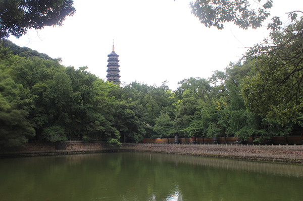 進(jìn)入天童寺,首先映入眼簾的是兩個(gè)萬工池,舊為放生池。池水清澈,碧瓦朱墻倒映入池,更添佳趣。據(jù)說池上方的琵琶石,以足跺之,鏗鏘發(fā)音如琵琶聲。