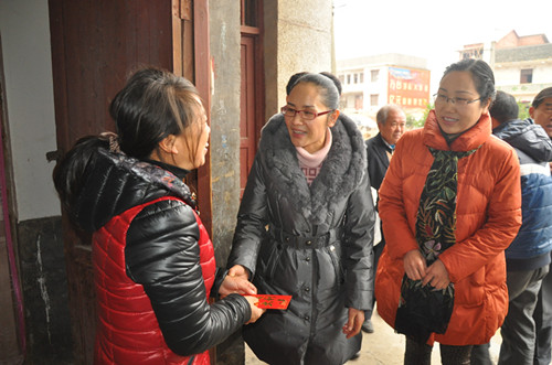 邵瑛(中)給貧困戶送上慰問(wèn)金