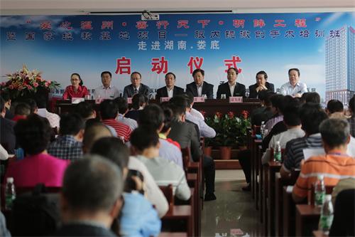 2014年5月16日,民盟中央“愛(ài)心溫州、善行天下、明眸工程”暨國(guó)家醫(yī)學(xué)教育基地項(xiàng)目眼科內(nèi)鏡微創(chuàng)手術(shù)培訓(xùn)班啟動(dòng)儀式在婁底眼科醫(yī)院舉行。民盟中央社會(huì)服務(wù)部部長(zhǎng)郭勇,湖南省政協(xié)副主席、民盟湖南省委主委楊維剛,民盟中央委員、溫州醫(yī)科大學(xué)附屬眼視光醫(yī)院執(zhí)行院長(zhǎng)王勤美,民盟湖南省委專職副主委兼秘書長(zhǎng)趙為濟(jì),婁底市政協(xié)主席姚兵,婁底市人大常委會(huì)原主任、婁底市慈善總會(huì)會(huì)長(zhǎng)王信卿出席啟動(dòng)儀式。婁底市政協(xié)副主席、民盟婁底市委主委邵瑛主持啟動(dòng)儀式。