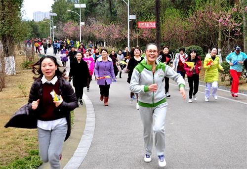 經(jīng)過激烈而快樂的環(huán)園賽跑,民盟婁底市醫(yī)衛(wèi)支部女盟員王利芝等獲得一等獎(jiǎng)。