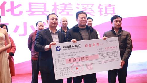 朱偉(左)代表中縱聯(lián)聯(lián)向新化槎溪鎮(zhèn)聯(lián)聯(lián)希望小學(xué)捐款30萬元