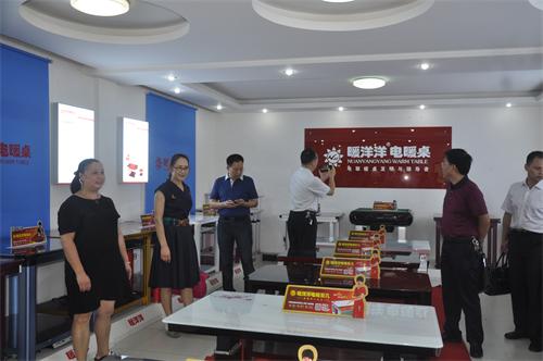 邵瑛(左2)一行參觀暖洋洋公司產(chǎn)品展覽室