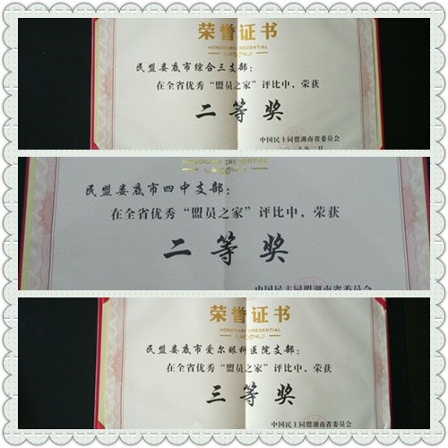 2017年,民盟湖南省委開展優(yōu)秀“盟員之家”評(píng)比,全省336個(gè)基層組織(不含省直組織),共評(píng)選出19個(gè)優(yōu)秀“盟員之家”,其中一等獎(jiǎng)3個(gè),二等獎(jiǎng)6個(gè),三等獎(jiǎng)10個(gè)。民盟婁底市綜合三支部、民盟婁底四中支部分別榮獲二等獎(jiǎng),民盟婁底愛爾眼科醫(yī)院支部榮獲三等獎(jiǎng)。