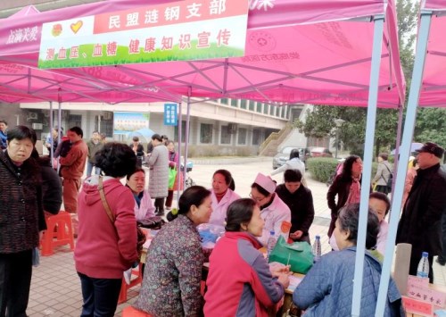 活動現(xiàn)場,人員熙熙攘攘,熱鬧非凡,百多米長的涼棚下,擺上了各種攤位、服務臺。民盟漣鋼支部的盟員們發(fā)揮自己的優(yōu)勢,組織了一支“義診、健康咨詢”的隊伍,支部委員曾金蘭、易俊、劉禮義、陳勇榮、毛志群負責組織、發(fā)放資料,支部盟員醫(yī)師李泓俊、彭培艷及入盟積極分子進行測血壓、血糖及健康知識咨詢等工作,前來應診的很多,應接不暇。一上午功夫,有近600人接受了志愿服務,大家對活動的開展拍手長稱贊。