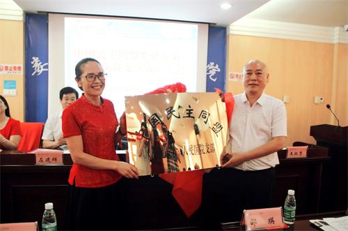 邵瑛為民盟婁底市第一人民醫(yī)院支部授牌、授章、授旗,并講話。她代