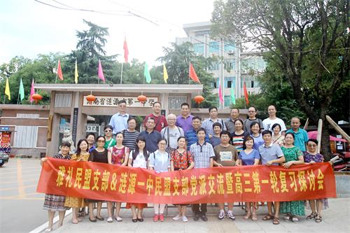 2018年7月15日,民盟長沙雅禮中學支部一行21人來到漣源市第一中學,與民盟漣源一中支部進行了盟務(wù)工作交流,并與漣源一中高三年級組就高三第一輪復習進行了研討。漣源市政協(xié)副主席、民盟漣源市委主委李海日,漣源一中校長吳夢周出席交流活動。