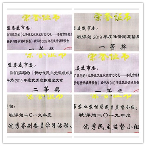 界別獲獎較多。民盟市委和盟員委員囊括政協(xié)所頒發(fā)的9個獎項。民盟婁底市委獲評“2019年度社情民意信息工作先進單位一等獎”;《讓傳統(tǒng)文化綻放時代之花——婁底市非物質(zhì)文化遺產(chǎn)的保護與傳承調(diào)研報告》獲評”2019年度優(yōu)秀調(diào)研報告”一等獎;《新時代民主黨派組織建設研究》獲評“2019年度優(yōu)秀理論文章”二等獎;民盟市委集體提案《加強農(nóng)村宅基地管理,探索“三權分置”改革》,羊小慶、朱宏志、劉兆梅、劉偉鋒等4人的個人提案,獲評“2019年度優(yōu)秀提案”;民盟組獲評“2019年度優(yōu)秀界別委員學習活動小組”;駐市農(nóng)業(yè)農(nóng)村局民主監(jiān)督小組(市政協(xié)民盟界別)獲評“2019年度優(yōu)秀民主監(jiān)督小組”;劉兆梅、劉德斌、劉慧雄、羊小慶、李海日、周曉明、凌會海等7人獲評“2019年度優(yōu)秀政協(xié)委員”;肖正懷 、李海日、劉兆梅、王文成獲評“政協(xié)云應用工作先進個人”;吳志奇獲評“2019年度優(yōu)秀新聞宣傳工作者”一等獎。