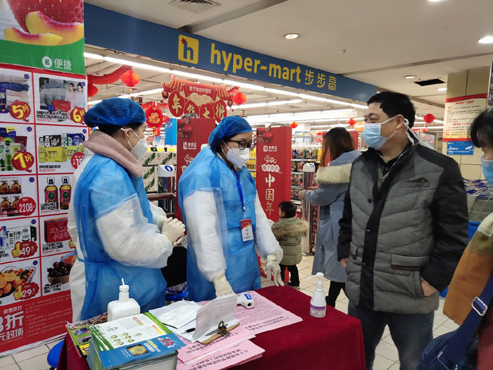 劉錦良(右1)看望在超市工作的醫(yī)務(wù)工作者