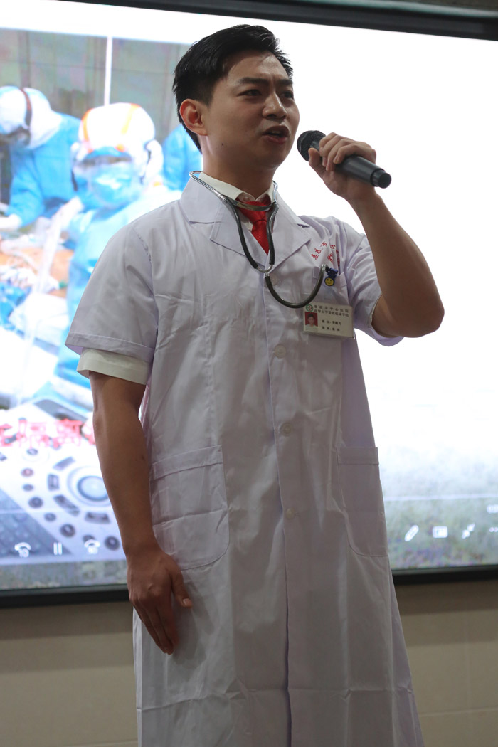 經(jīng)過評(píng)委現(xiàn)場(chǎng)評(píng)分,婁底市中心醫(yī)院支部李騰飛宣講的《生命的守候》、