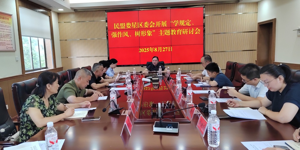 2025年8月27日,民盟婁星區(qū)委會在區(qū)統(tǒng)戰(zhàn)系統(tǒng)會議室召開“學規(guī)定、強作風、樹形象”主題教育研討會,會議由區(qū)政協(xié)副主席、民盟區(qū)委會主委王文成主持,全體盟區(qū)委委員和基層支部主委參加會議。